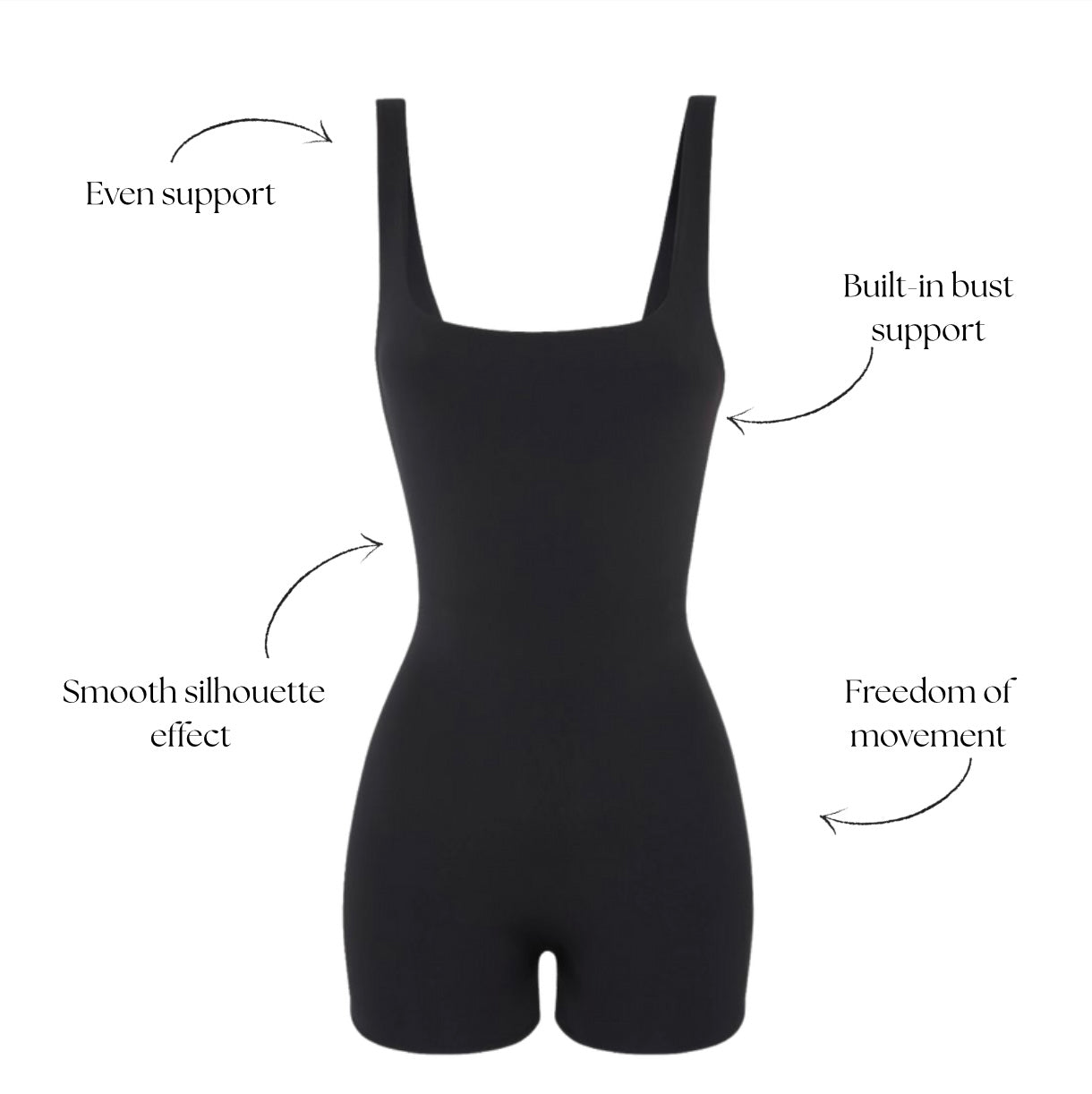 - Targeted support: shapes the tummy, hips, and waist while the wide elastic straps provide comfort and freedom of movement.